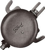 Canadian made Cut-out - Autolite Canada cutouts have a "C" stamp mark directly below the Ford script. The "C" stamp mark was done to brand the item so that when Canada Customs officials inspected Ford plants across Canada, they could in fact determine at a glance that Canadian made parts were being used. The "C" stamp mark varied in size as well as the angle to the Ford script.