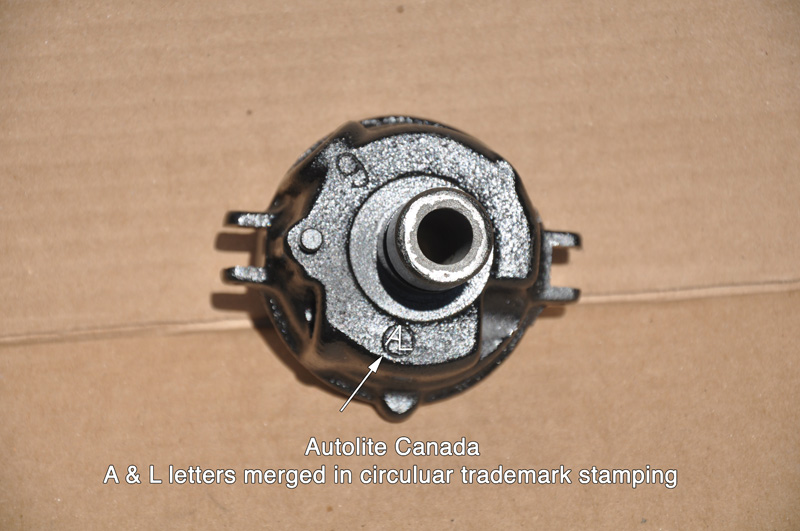 Autolite Canada: A.L. followed by a casting number stamped near flange. |
