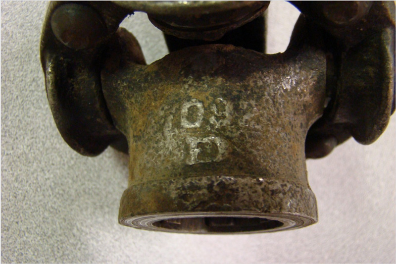 Dominion Forge forged Universal Joint. Note the combined DF in the photo. Most early parts were well marked. Some markings ceased in later years of production. |